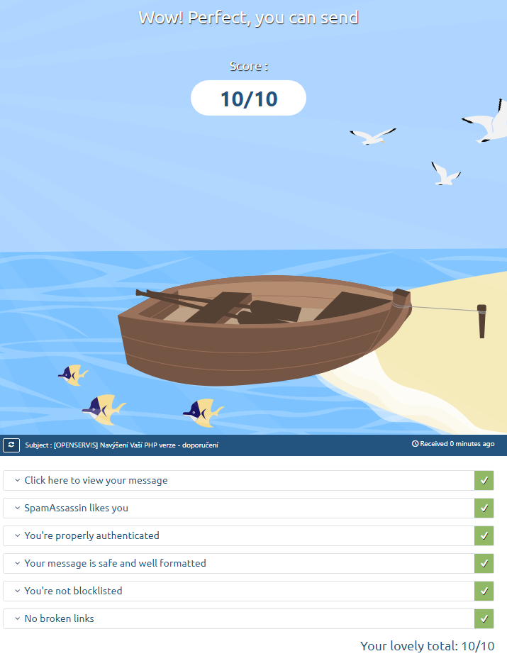 Dostáváme hodně dotazů, jak si náš nástroj stojí v nezávislých a obecných testech na „spam“ (respektive na obsah e-mailu jako takového). Tak si to ukážeme, vyzkoušeli jsme reálný newsletter z našeho systému.